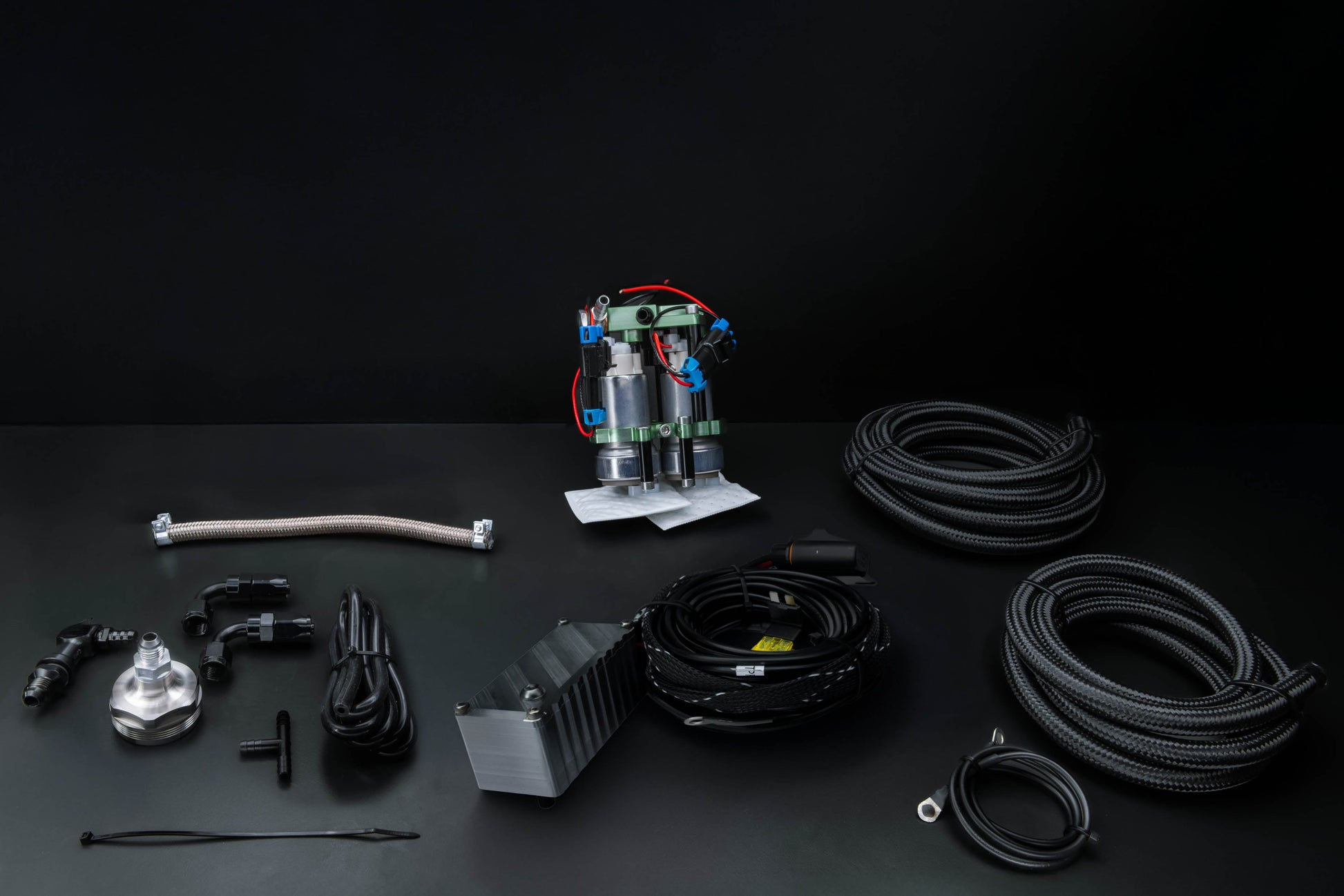 All kits include the necessary wiring for electrical installation and come with a controller to ensure seamless integration and optimal performance. The unique design of the RTMG billet adapter allows for a seamless connection between the two fuel pumps, ensuring durability and efficiency.